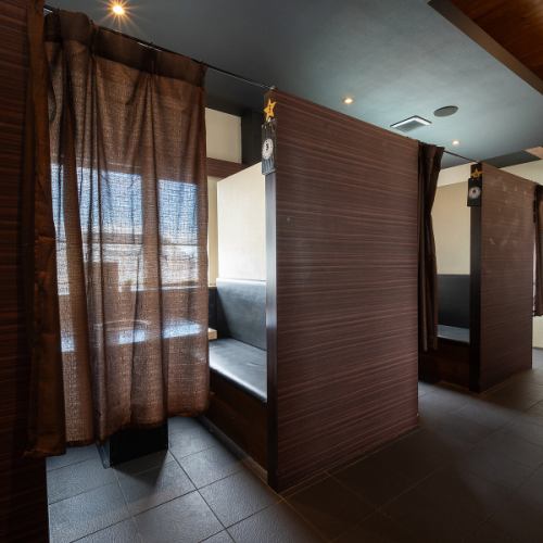 ほどよく仕切られた半個室の6名席が6卓あり、ゆったりと過ごせる落ち着いた空間です。外からの視線を気にせず会話を楽しめるため、デートや記念日、大切な方との食事にもぴったり。親しい仲間同士の集まりにも使いやすく、プライベート感のある雰囲気でゆっくりとお食事をお楽しみいただけます。